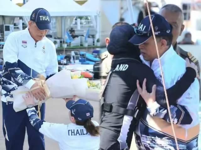 值得一提的是,这位不雅赛的王后自身等于“体育才女”。就在前几天,她刚以流露员身份在本届东南亚流露会SSL47级龙骨风帆比赛中率队夺金。国王玛哈躬行到场献花并受奖,王后伸开双臂拥抱国王、跪地接花的画面相当荒僻。